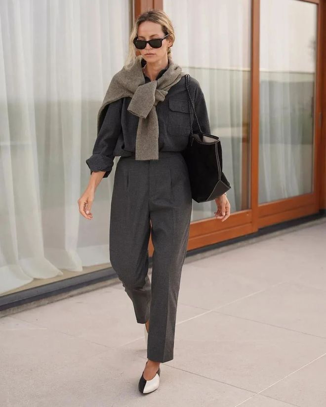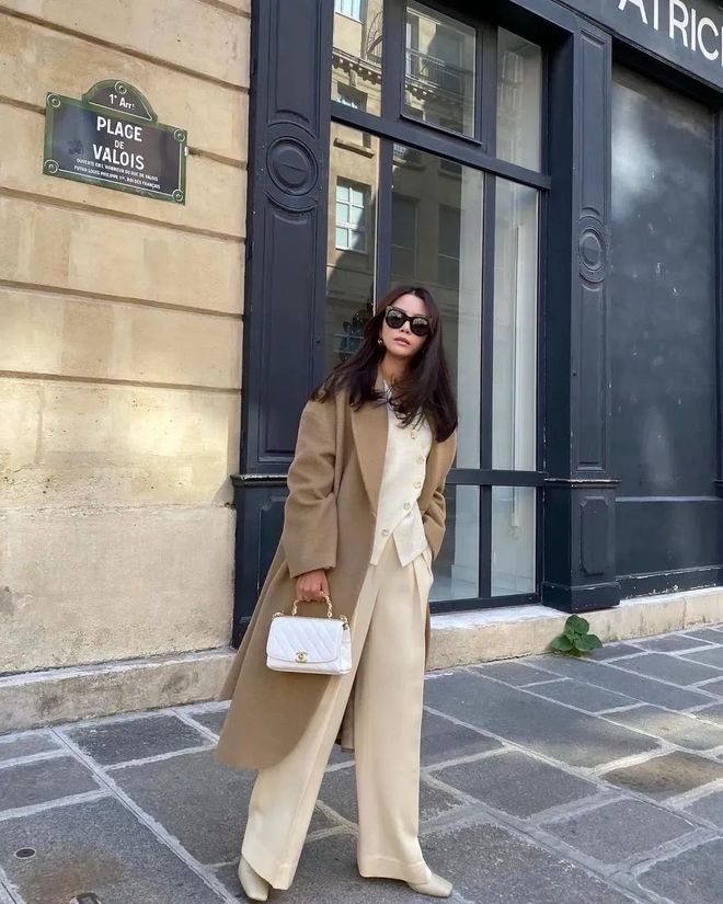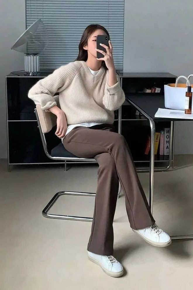 驼色的奶奶裤更易让人眼前一亮,搭配平底鞋,英姿帅气与清甜随性并存,妥妥的混搭chic!