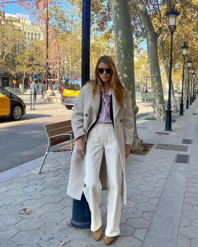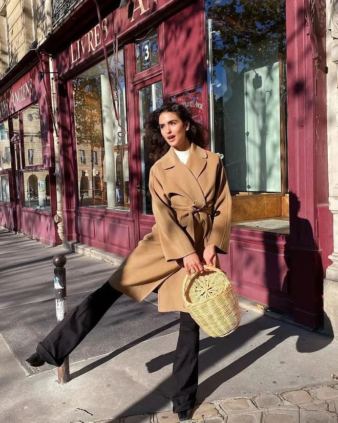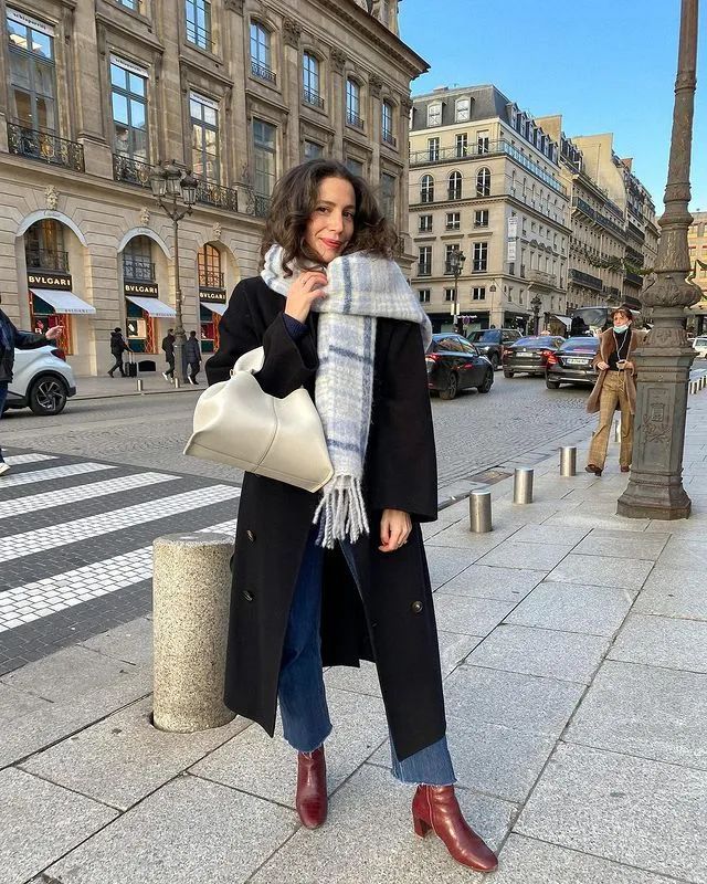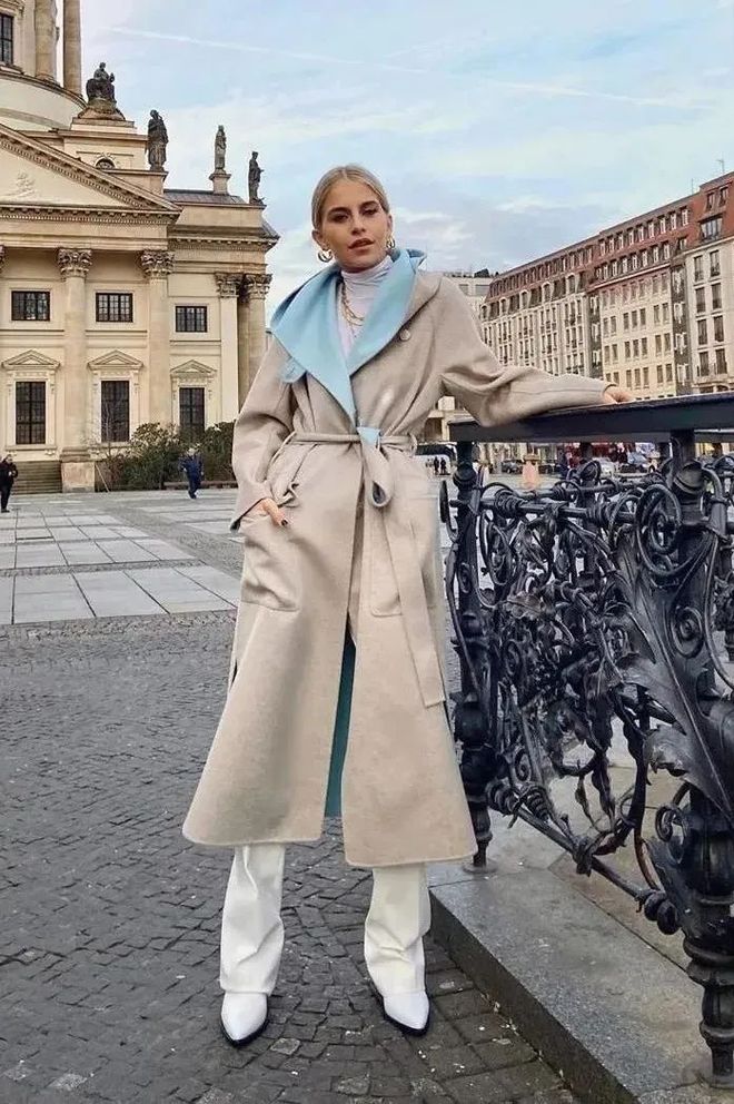 如果是个子比较高的姐妹,在冬天还可以选择长一点的大衣,搭配直筒裤+方头靴气场更足,立马成为最个性的酷girl。