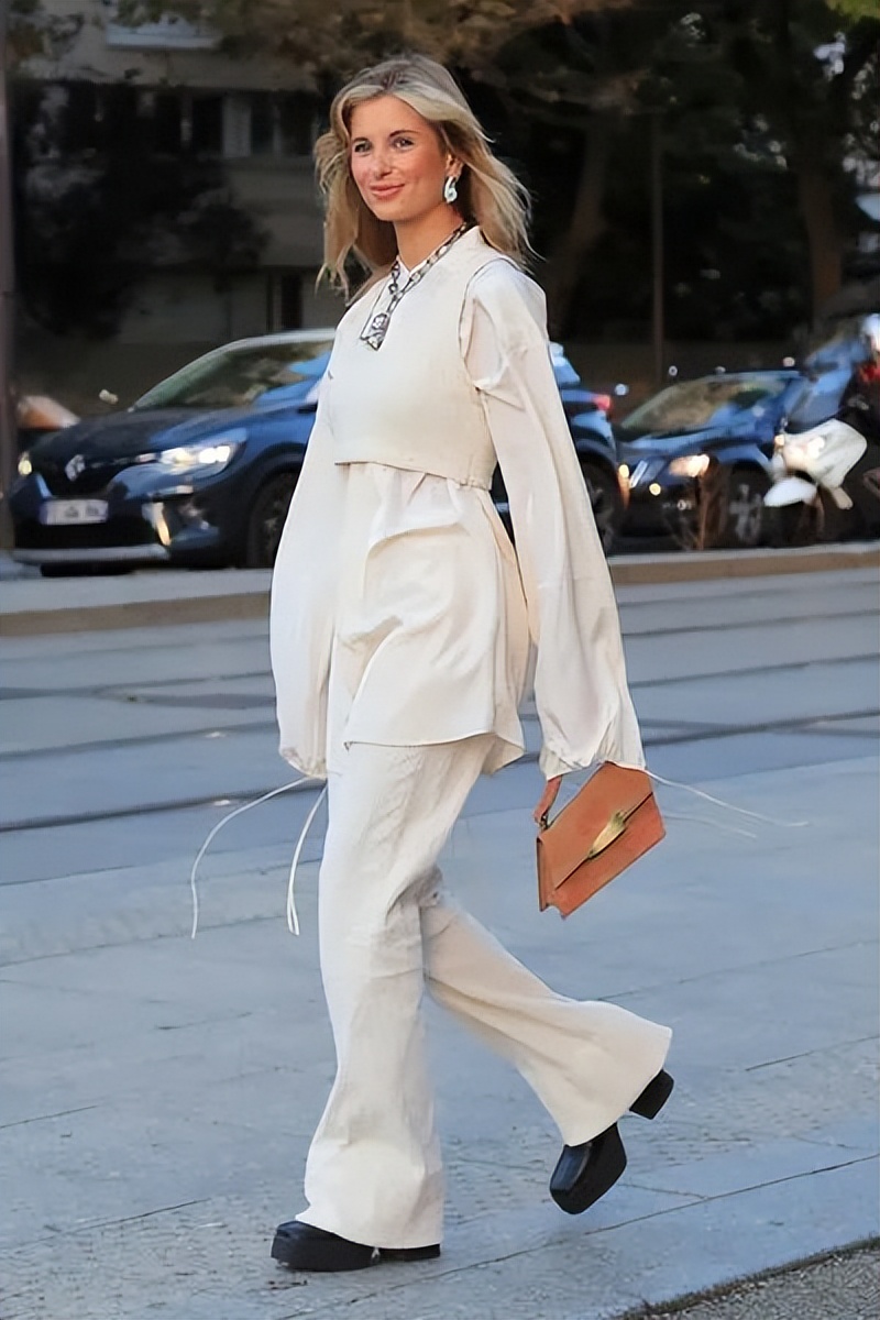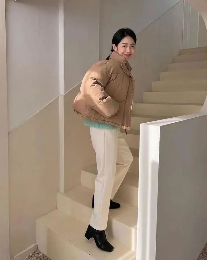 白色的奶奶裤干净又清爽,搭配臃肿的棉服都能穿出时髦的造型,轻轻松松显瘦10斤还能让你从人群中脱颖而出,一点也不拖沓。