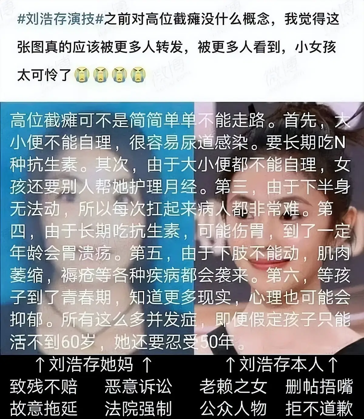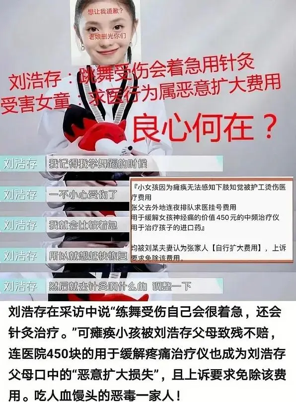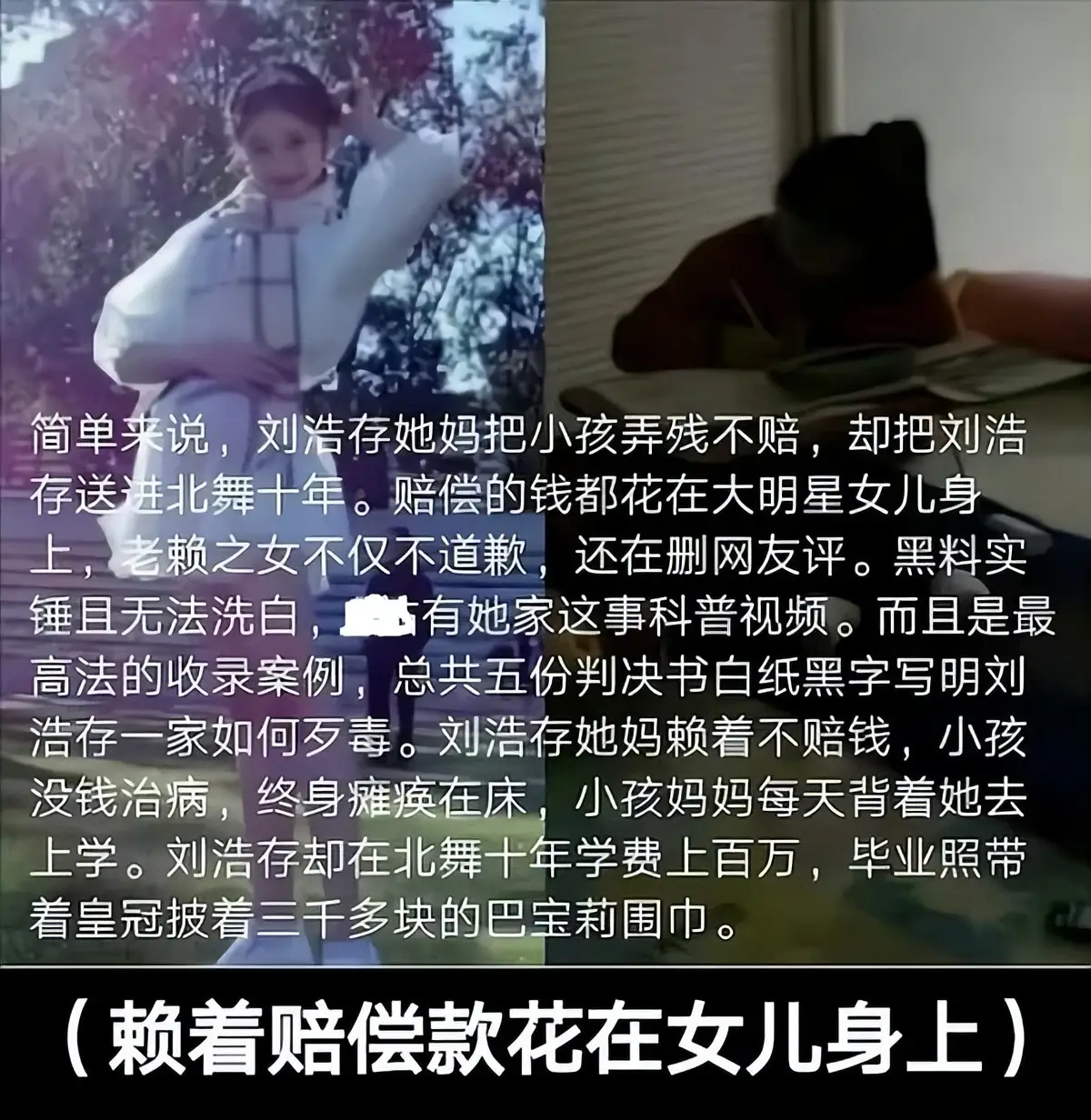 而这期间,刘浩存接受着最好的舞蹈教育,过着优渥的生活,受害者小女孩却只能终身依赖父母照顾生理。能说无辜吗?