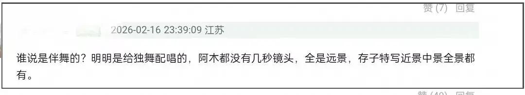 镜头基本都切给了刘浩存,不止有多个大全景,还有多次特写、近景、中景,待遇比首席舞蹈演员唐诗逸、朱洁静好很多。至于海拉阿木,有网友吐槽节目结束都不知道唱歌的长啥样。