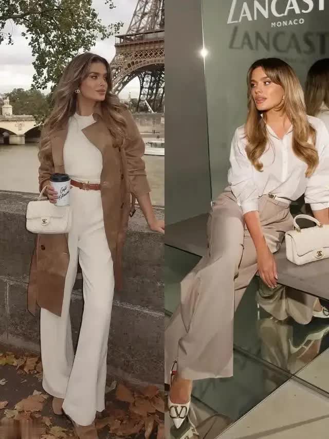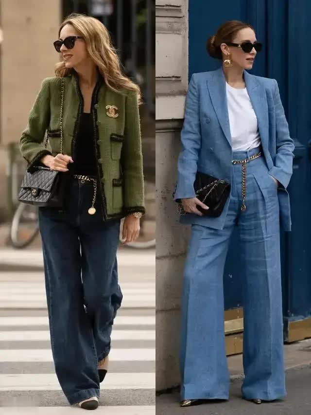 上衣无论是精致时髦的小香风外套,还是挺括有型的西装,都可以和阔腿裤完美搭配。散发出来的气质慵懒随性或是简约干练。