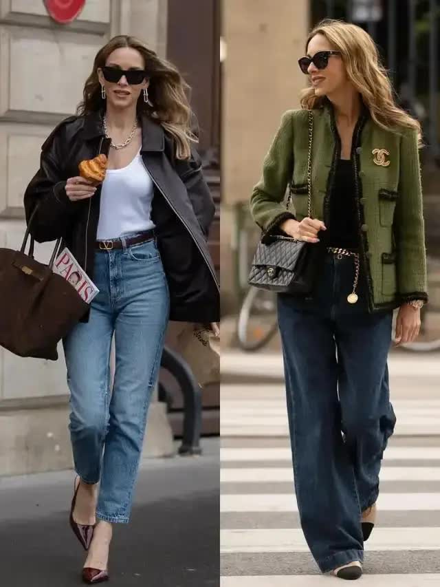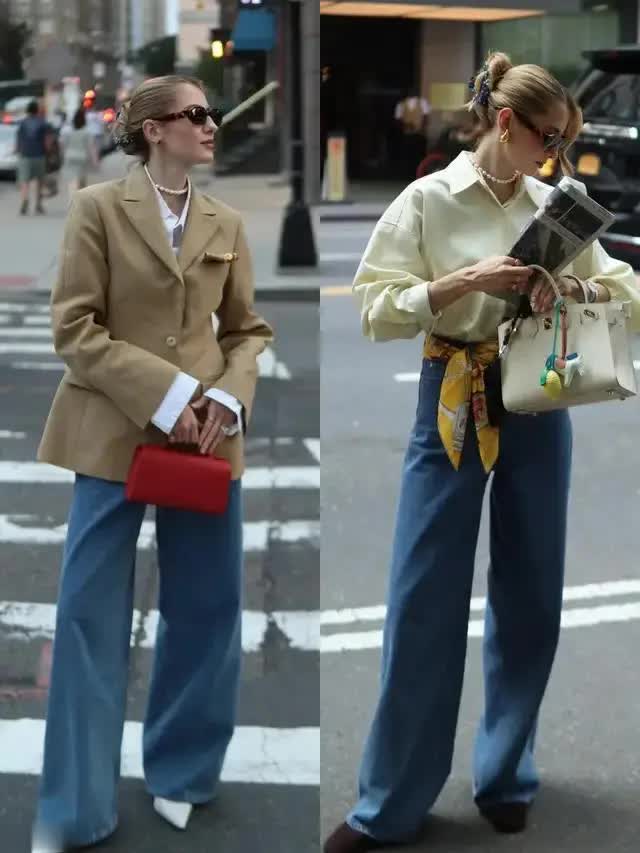 特别是上面这一条牛仔阔腿裤,它垂落时无声,走路时自带风,随性又洋气。