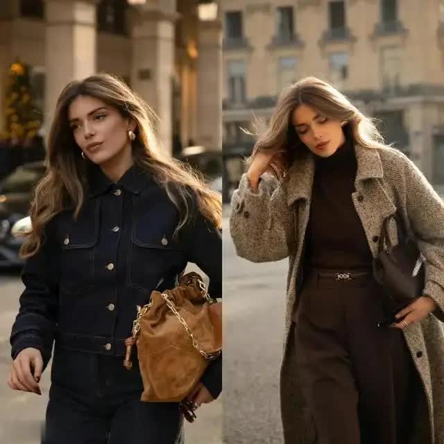 换上大地色的短外套可以优化身材比例使得穿搭者身材变成三七分,同时,这样的色彩搭配复古耐看。
