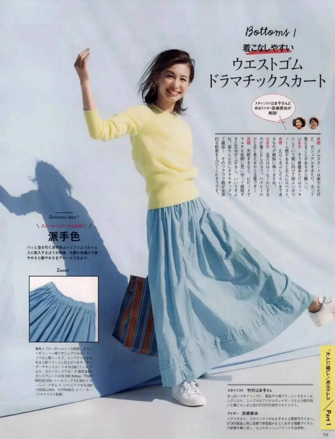 这样的一半黄+一半蓝的组合,特别适合清凉的春夏里,露肤穿更衬肤色。