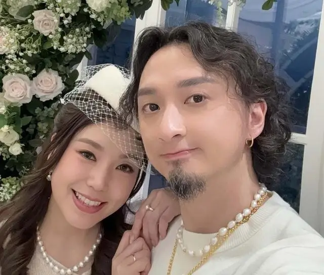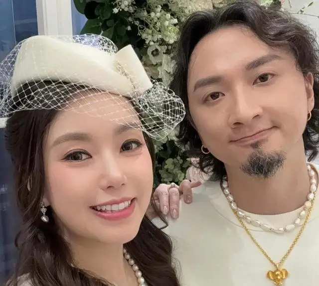 婚礼当天,梁雨恩未选夸张婚纱,仅挑了条简单白裙、戴了顶白帽。其老公也选了套白色服装,二人十分般配。