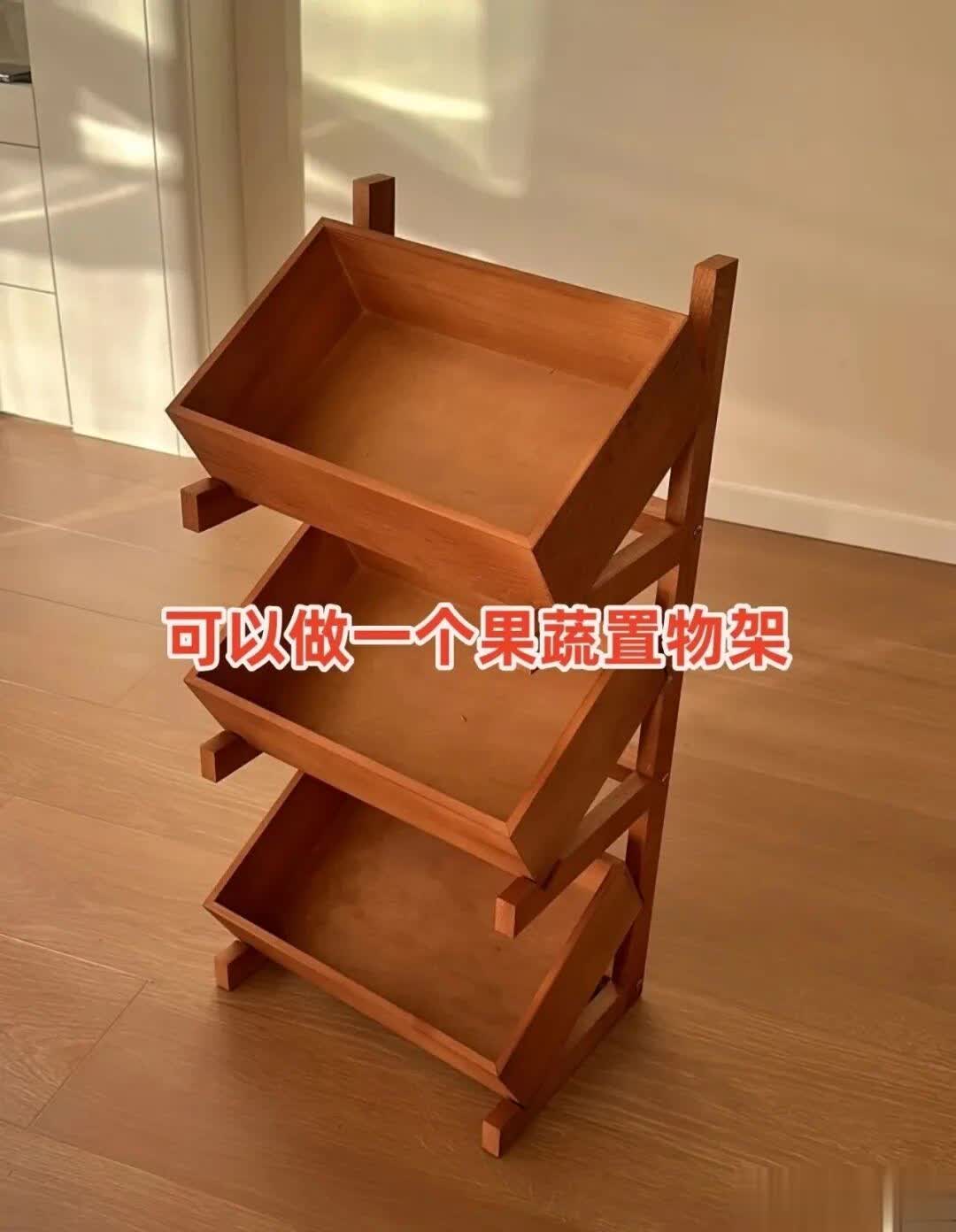 选轻薄的木板边角料,切割成镂空的方形或圆形,拼接成多层果蔬置物架,放在厨房角落,用来放青菜、萝卜、土豆等果蔬,镂空设计通风透气,能防止果蔬腐烂,还能让厨房台面更宽敞。