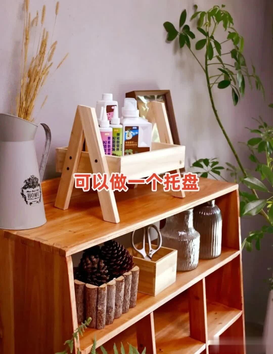 挑表面光滑的木板边角料,切割成方形、圆形或不规则形状,打磨抛光后,可刷漆或保留原木纹理,做成简易托盘,放在茶台放茶具、放在餐桌放水果、放在卧室放化妆品,多功能使用,颜值还超高,随手一拍都出片。