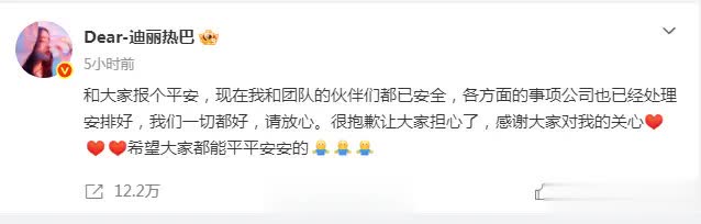 迪丽热巴在声明中清晰表明:“此刻我与团队伙伴均已安然无恙,公司也已将各方面事项处理妥当,一切顺遂。”