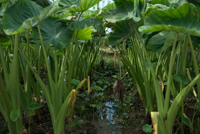 等到芋头长到一人高,叶片封行的时候,地下的子芋、孙芋开始分生了。这时你要是扒开土查看,会发现芋头节上会长出许多细小的须根,甚至有些子芋的顶芽也想冒出来长叶子。这可是个关键节点!千万不能心软,必须进行“下控”。所谓“控”,一是要控制水和氮的用量,这时候不能再大量浇水并施尿素了,不然只会光长叶子不长芋头;二是要动手“断后路”,也就是我们常说的“控边荷”或“摘仔芽” 。