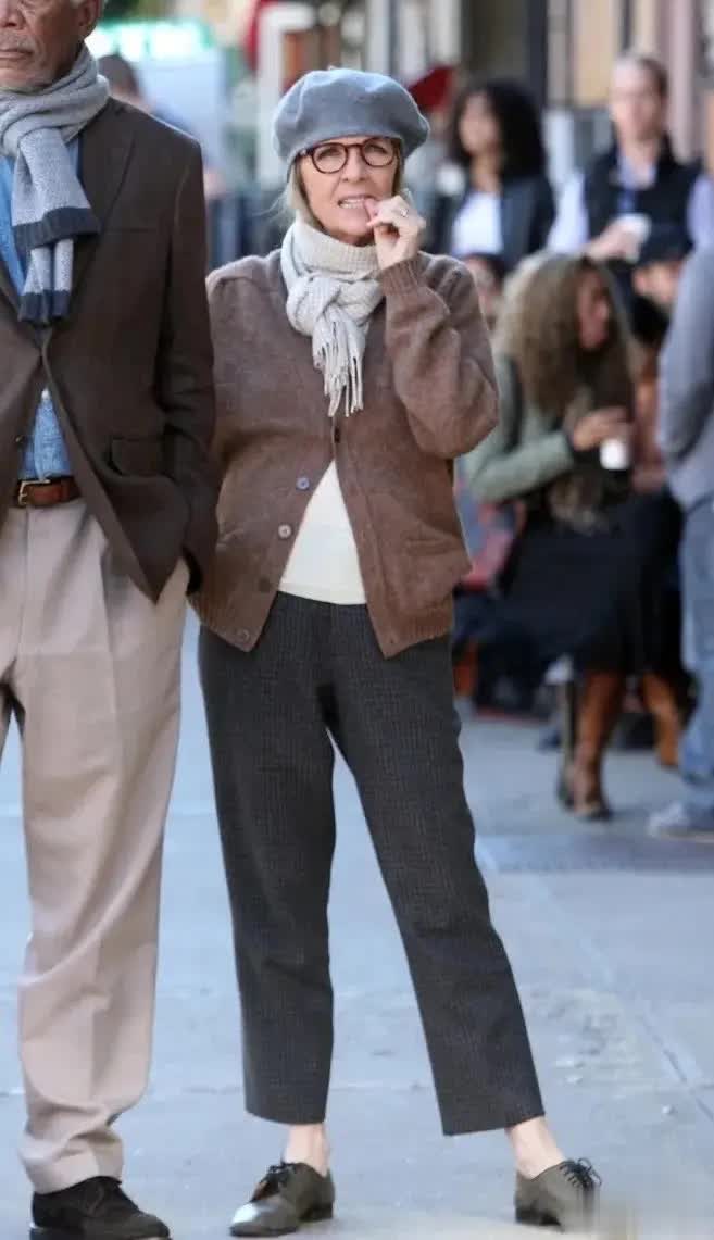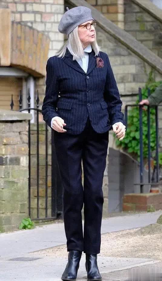 大大方方地接受年龄带来的身材发福,在这个基础上尽量选择适合自己这个年龄、气质的穿搭也许才是最好的选择。不要拧巴。卡其色的西装,搭配黑色的毛呢裤,这就是一个老太太普普通通的打扮,但是又处处显示着讲究,让人觉得并不简单。