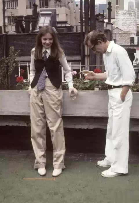 而伍迪·艾伦无疑是善于发现她独特的美的伯乐,他很欣赏她私下里的穿衣风格。所以,在拍摄《安妮·霍尔》时,黛安·基顿的衣服全是自己搭配好的。当时的服装造型师还抱怨她穿得太夸张了。但伍迪·艾伦却说:“随她去吧,她是个天才,她想穿什么就穿什么。